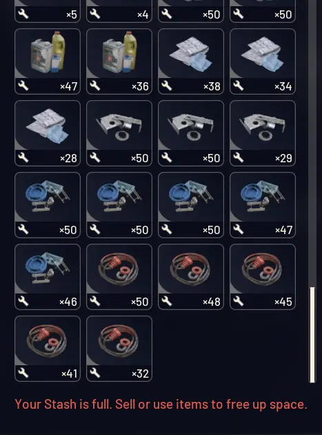 You just extracted with a bag full of loot. Your stash is at capacity. You have to sell something to make room.